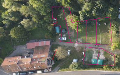 Die Ferienwohnungen haben jeweils einen Balkon (siehe roter Pfeil im rechts/unten stehendes Bild) von dem aus Du Dein Pferd jederzeit sehen kannst.